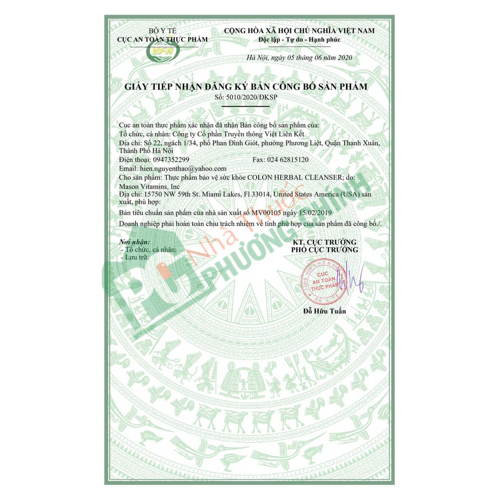 Mason Natural Colon Herbal Cleanser – Hỗ Trợ Chức Năng Đại Tràng