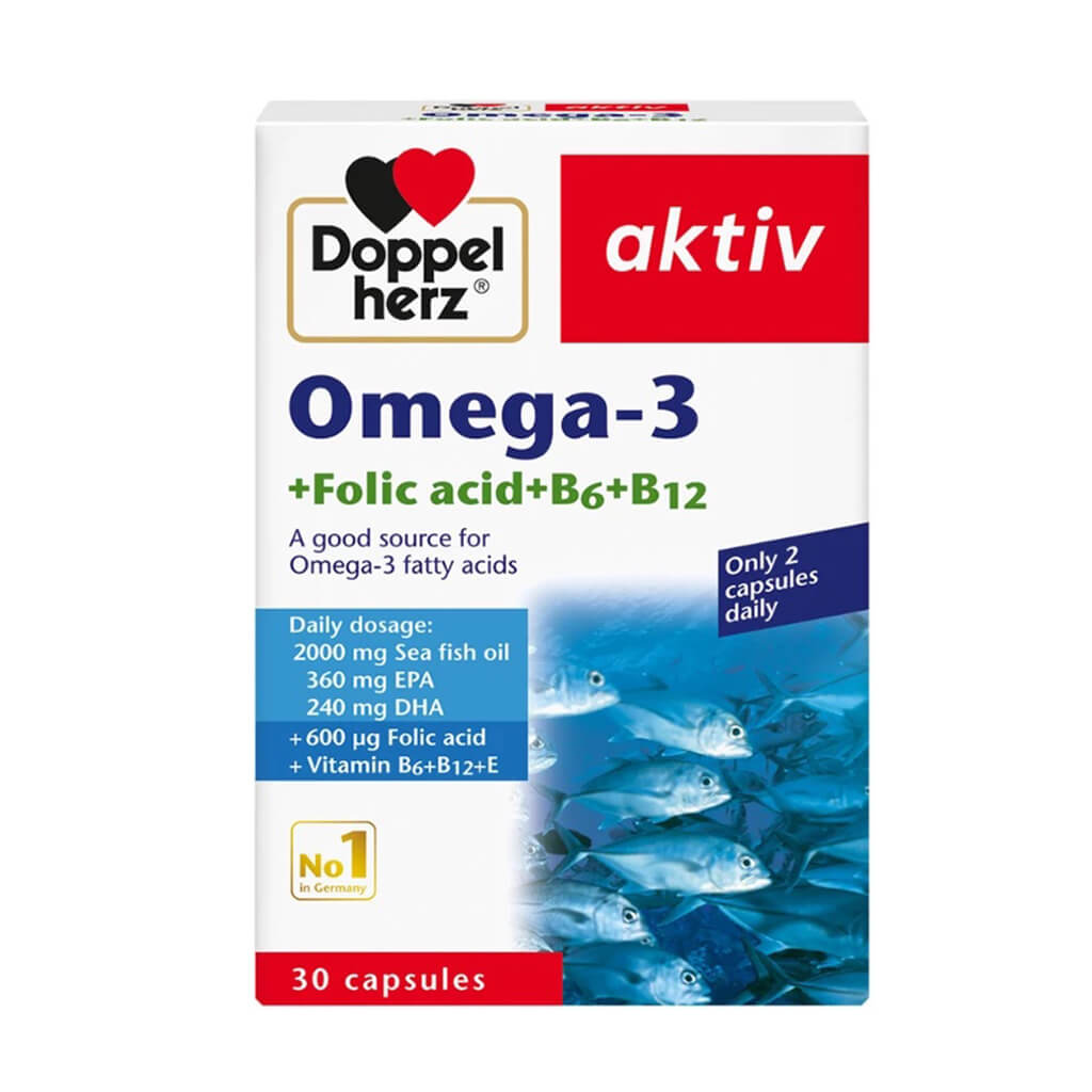 Viên Uống Omega 3 Doppelherz Aktiv Omega-3 + Folic Acid Giúp Tăng Cường Sức Khỏe Tim Mạch & Thị Lực